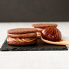 しっとりと焼き上げたサブレに、濃厚な生チョコレートクリームとマロンクリーム、そして栗を合わせた「栗のチョコサンドクッキー」。香ばしい生地とまろやかなチョコ、秋の実りを感じる栗の優しい甘さが重なり合う、贅沢なひと品です。